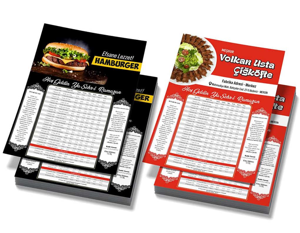 A4 Ebat İl ve İlçenizin Ezan Vakitlerinin Olduğu Firmanıza Özel İmsakiyeler